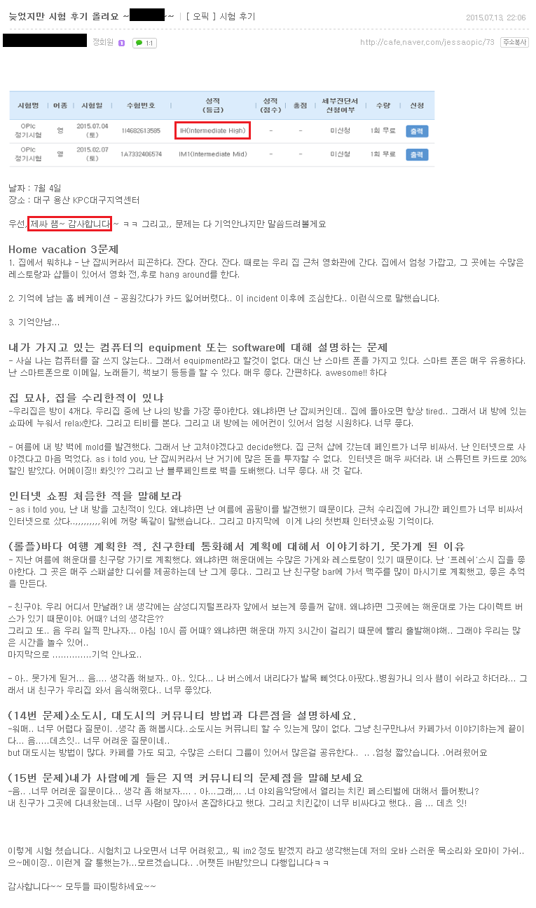 오픽 | (대구오픽 IH후기) IM1 에서 IH 받은 후기!! 페이지 정보 작성자 MELPARK 작성일15-09-17 10:59 조회4,625회 댓글0건 이전글 다음글 목록 본문 (클릭 하시면 크게 보실 수 있습니다.) 수강생 후기 입니다. 더 많은 후기는 우측 카페 링크 가입 후 보실 수 있습니다. 이전글 다음글 목록