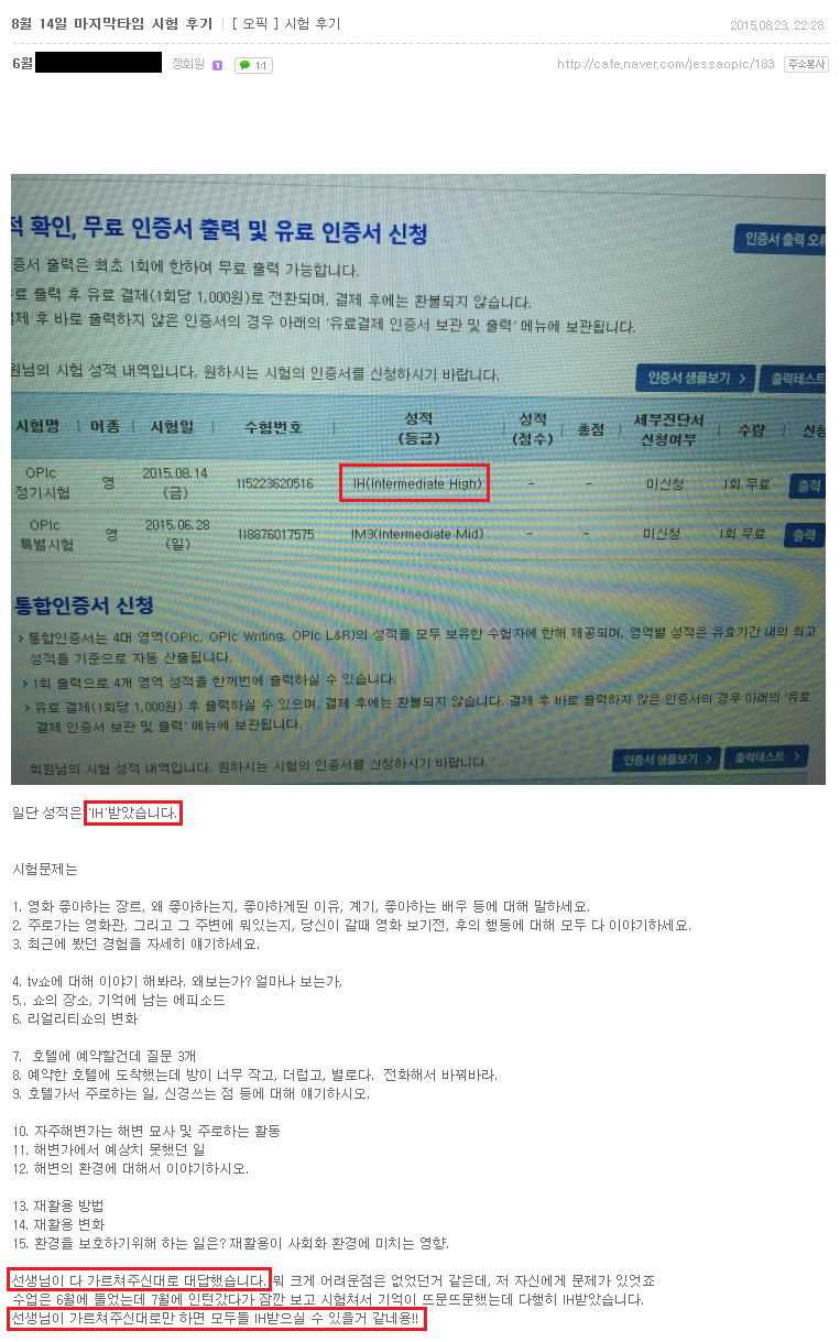 오픽 | (대구오픽 IH후기) 선생님이 다 가르쳐주신대로 대답했습니다. 페이지 정보 작성자 MELPARK 작성일15-09-18 09:09 조회4,162회 댓글0건 이전글 다음글 목록 본문 (클릭 하시면 크게 보실 수 있습니다.) 수강생 후기 입니다. 더 많은 후기는 우측 카페 링크 가입 후 보실 수 있습니다. 이전글 다음글 목록