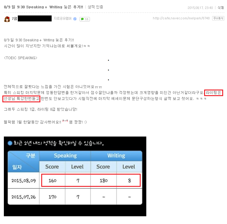 토스 | (대구토스 7급후기) 라이팅은 선생님 특강 한번듣고 8급!! 페이지 정보 작성자 MELPARK 작성일15-09-18 09:10 조회4,370회 댓글0건 이전글 다음글 목록 본문 (클릭 하시면 크게 보실 수 있습니다.) 수강생 후기 입니다. 더 많은 후기는 우측 카페 링크 가입 후 보실 수 있습니다. 이전글 다음글 목록
