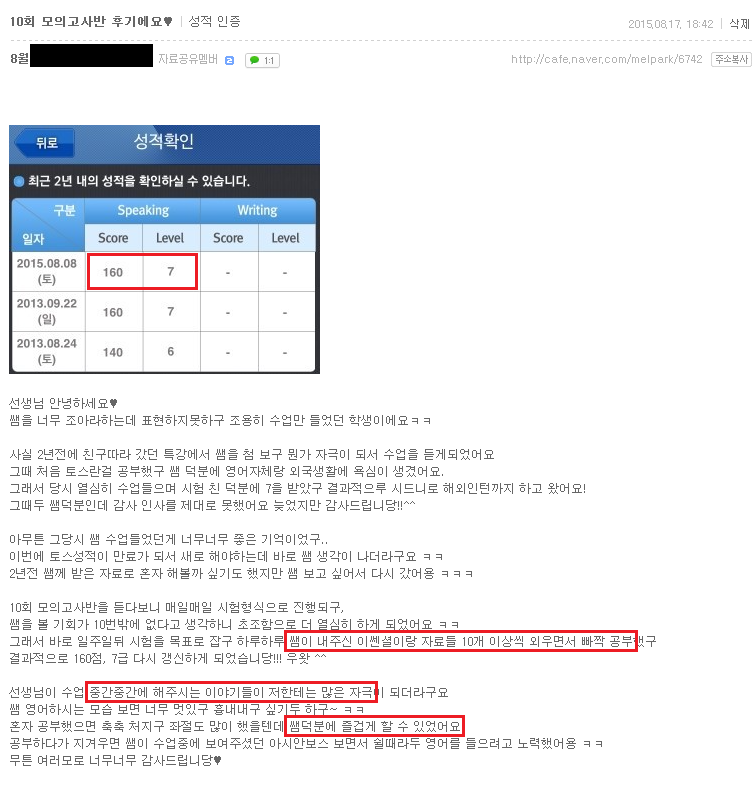 토스 | (대구토스 7급후기) 10회 모의고사반 후기예요♥ 페이지 정보 작성자 MELPARK 작성일15-09-18 09:11 조회4,160회 댓글0건 이전글 다음글 목록 본문 (클릭 하시면 크게 보실 수 있습니다.) 수강생 후기 입니다. 더 많은 후기는 우측 카페 링크 가입 후 보실 수 있습니다. 이전글 다음글 목록