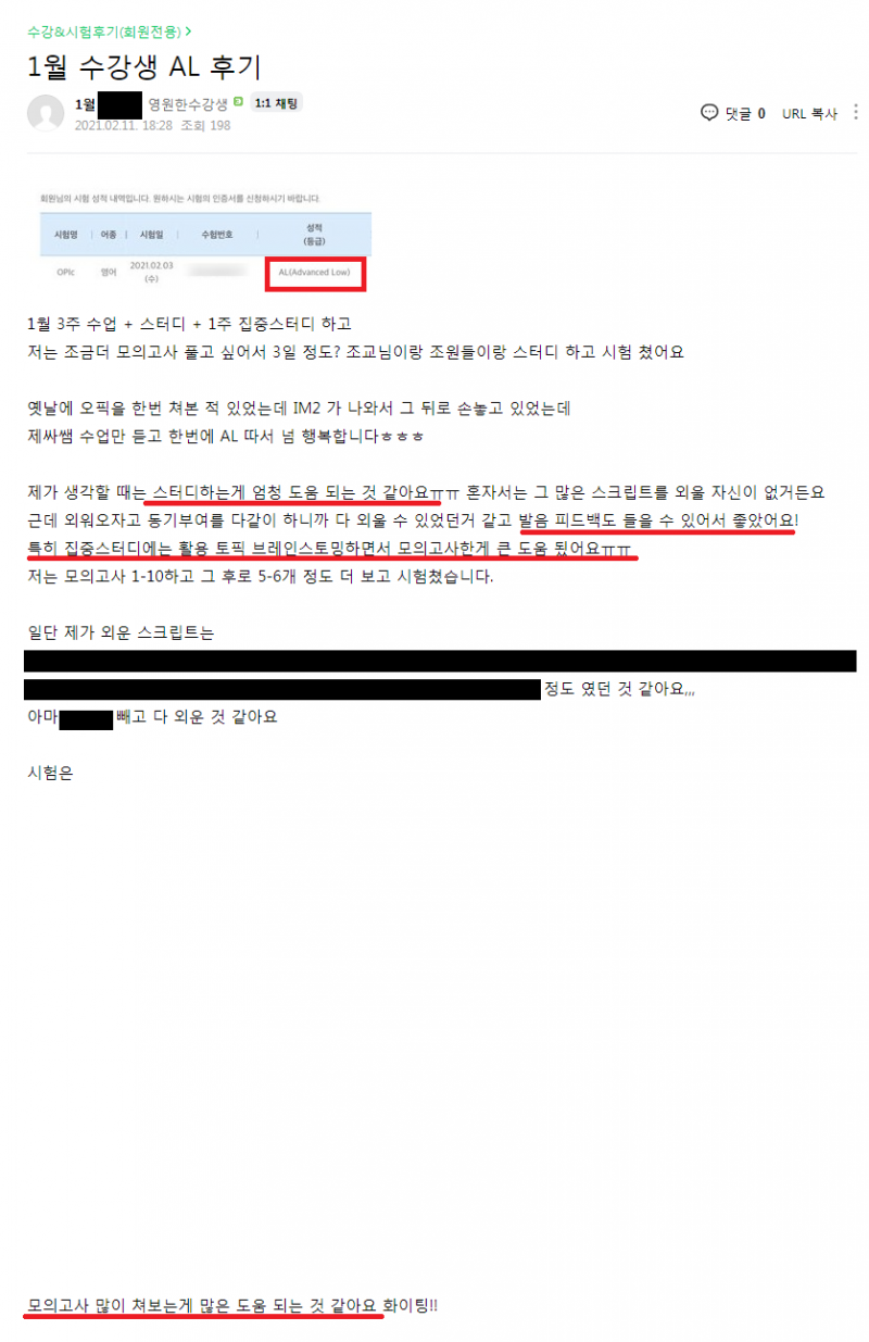 오픽 | (대구오픽 AL후기) 수업부터 스터디, 모의고사까지 제싸오픽 하나로 완벽하게 준비 끝! 페이지 정보 작성자 MELPARK 작성일21-03-05 14:33 조회10,529회 댓글0건 이전글 다음글 목록 본문 #멜팍어학원 #제싸오픽 #대구오픽 #대구오픽학원 이전글 다음글 목록