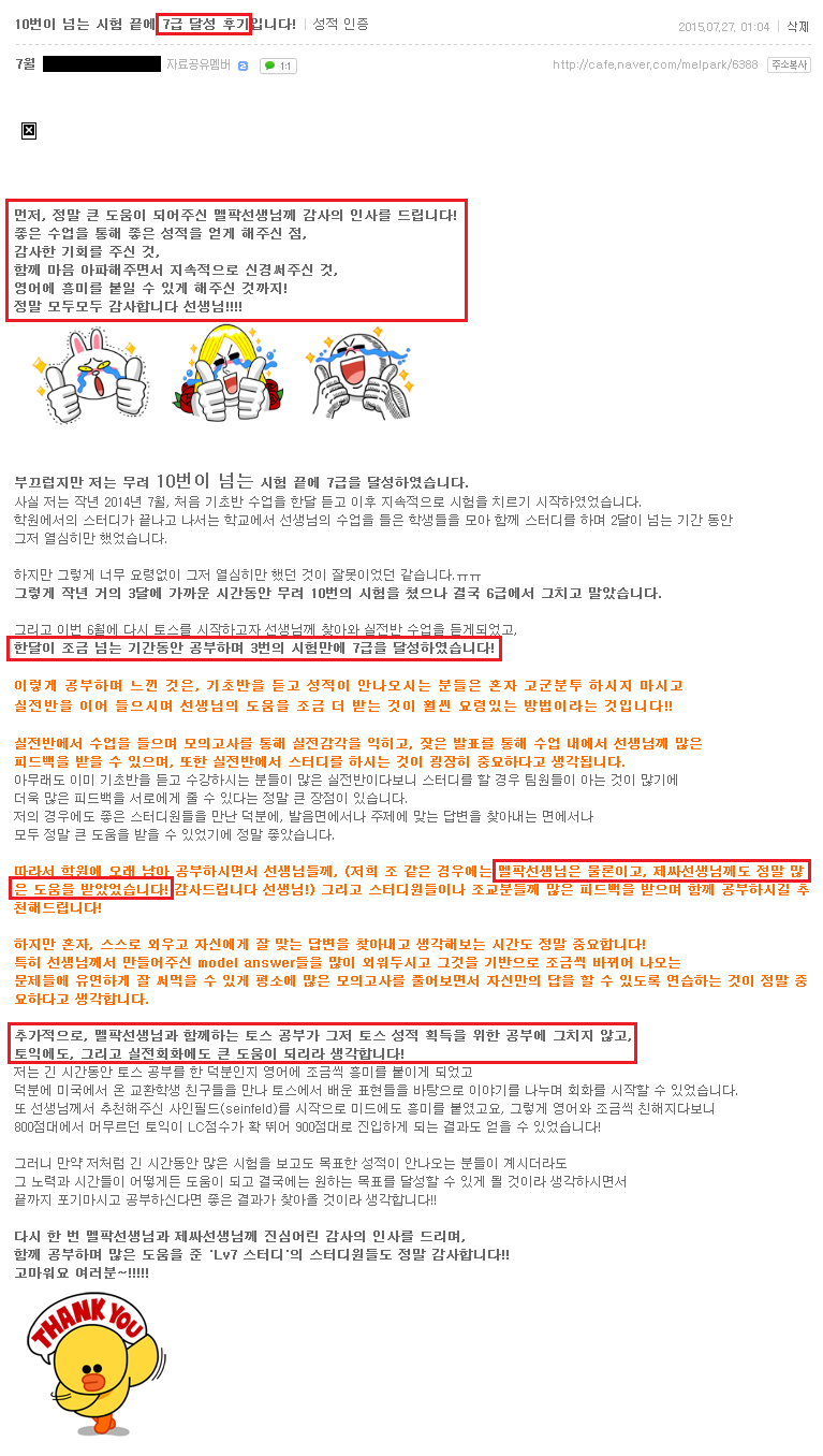 토스 | (대구토스 7급후기) 10번이 넘는 시험 끝에 7급 달성 후기입니다! 페이지 정보 작성자 MELPARK 작성일15-09-21 15:38 조회4,210회 댓글0건 이전글 다음글 목록 본문 (클릭 하시면 크게 보실 수 있습니다.) 수강생 후기 입니다. 더 많은 후기는 우측 카페 링크 가입 후 보실 수 있습니다. 이전글 다음글 목록